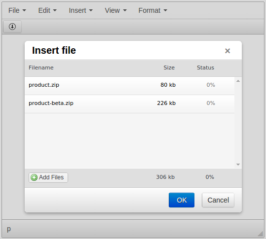 Upload a picture and insert a preview to the site. Compatible with LightBox and other viewers.