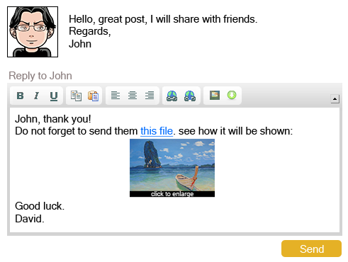 It is based on the fact any Drupal site uses WYSIWYG HTML editor (usualy CKEditor or sometimes TinyMCE). It will work and TinyMCE too, but I'll explain you how to let users attach images and files via CKEditor. TinyMCE version of these plugins also can be found on DOKSoft site.