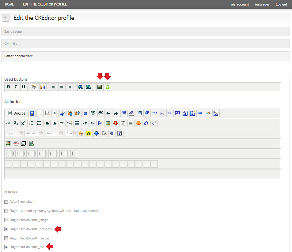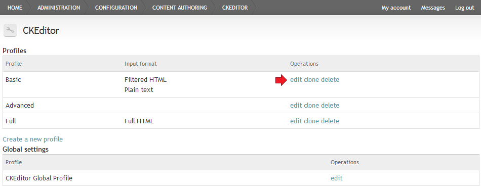 $config['BaseDir'] = '../../../../files/ckutils/';Now set configured profile as default to anonymous and authorized users if you did not do it yet.