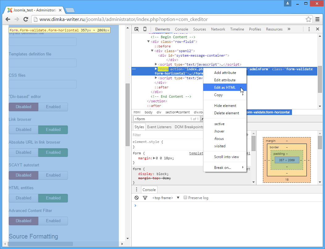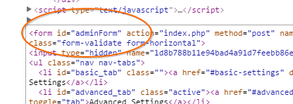 <form to the search box to locate the form tag in the HTML source. The nearby code fragment should look as shown below:id=”adminForm” inside the form tag as shown below:
