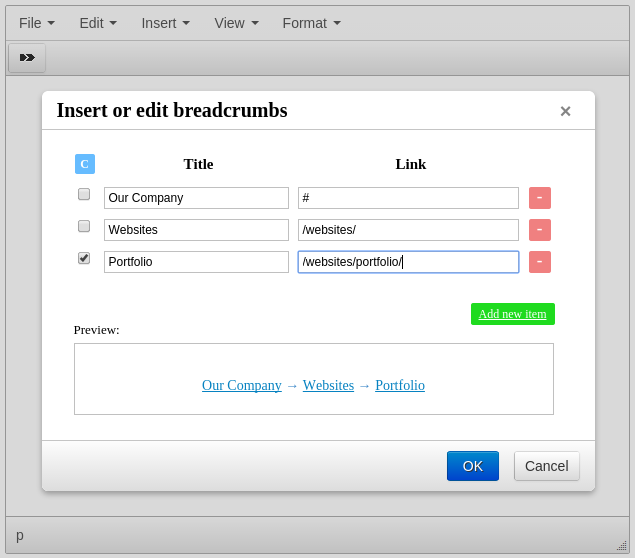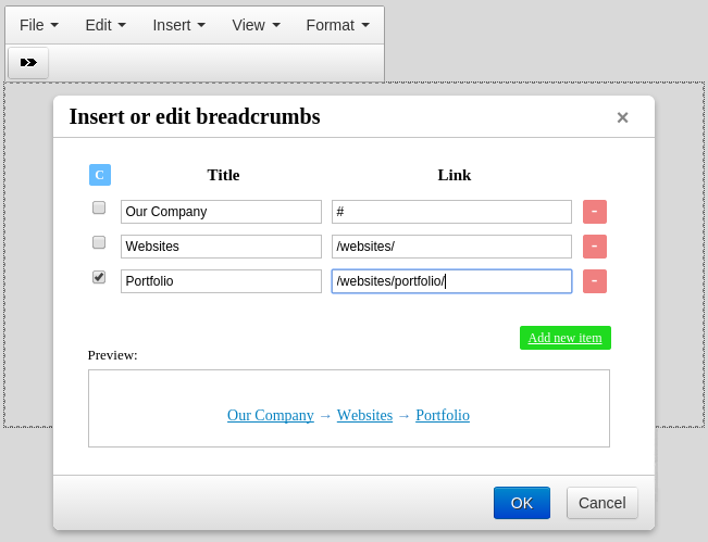 Insert into your website pages navigation elements (breadcrumbs) to show to a visitor his position on the site.