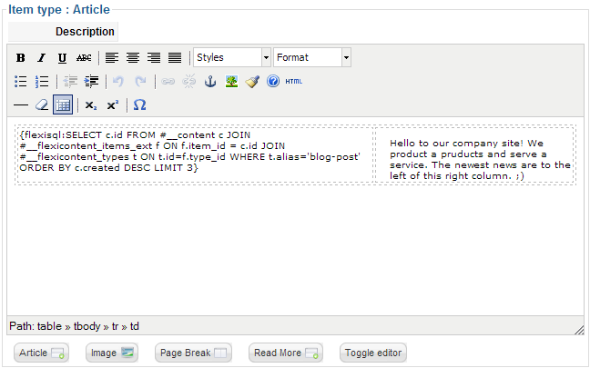 Also you can use pager adding this parameters like this: flexisql(10,someclass):... Where 10 is items count on one page, someclass is CSS class applied to pager. Do not forget to remove LIMIT construction from your SQL!